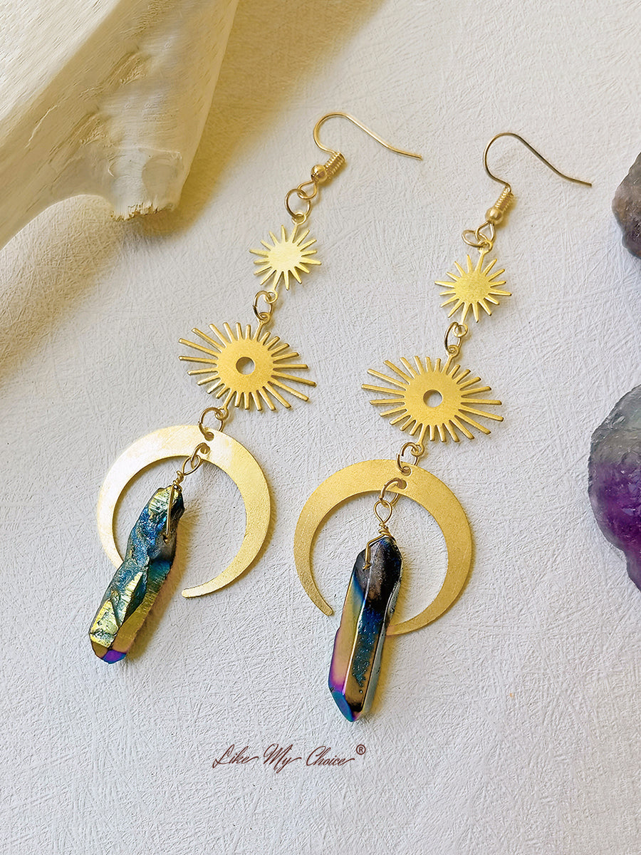 Vintage Crystal Carved Hook Drop Dangle Ethnic Earrings
