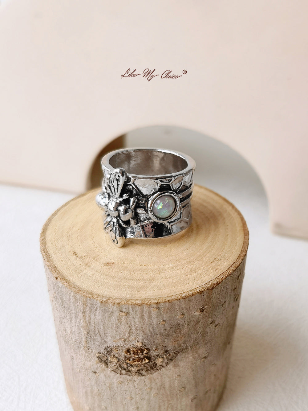 Water Wave Pattern Bee Protein Stone Boho Ring